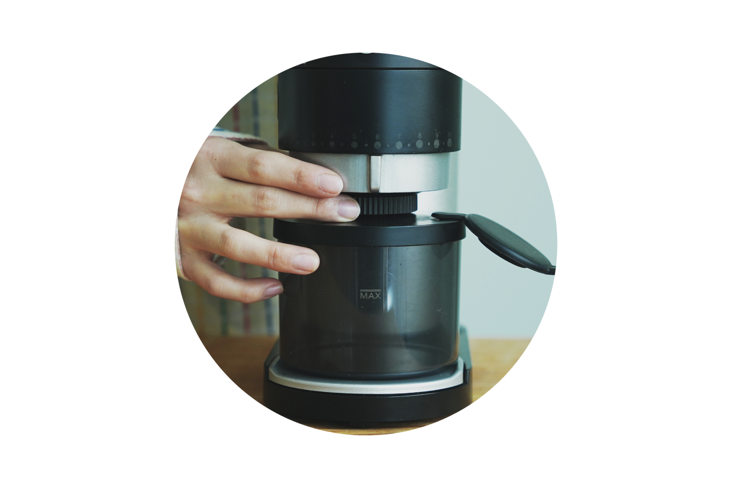 ホッパーのフタを外してお好きなコーヒー豆を入れます。