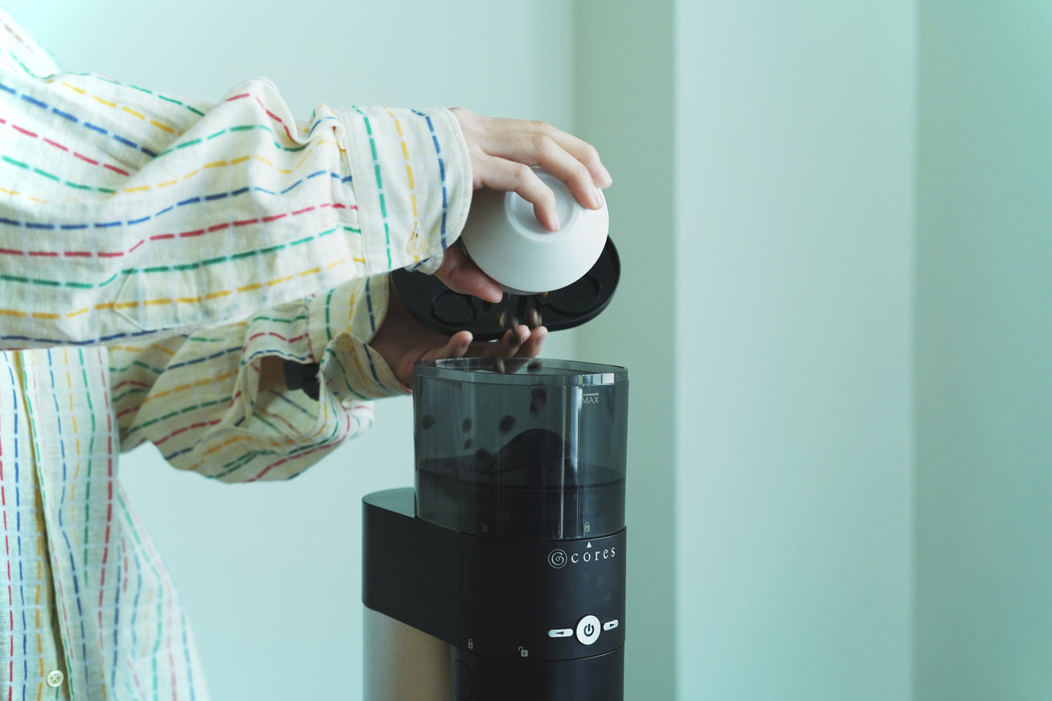 coresのグラインダーで挽いたコーヒーはマイルドな味わいに仕上がるのが特徴的です。