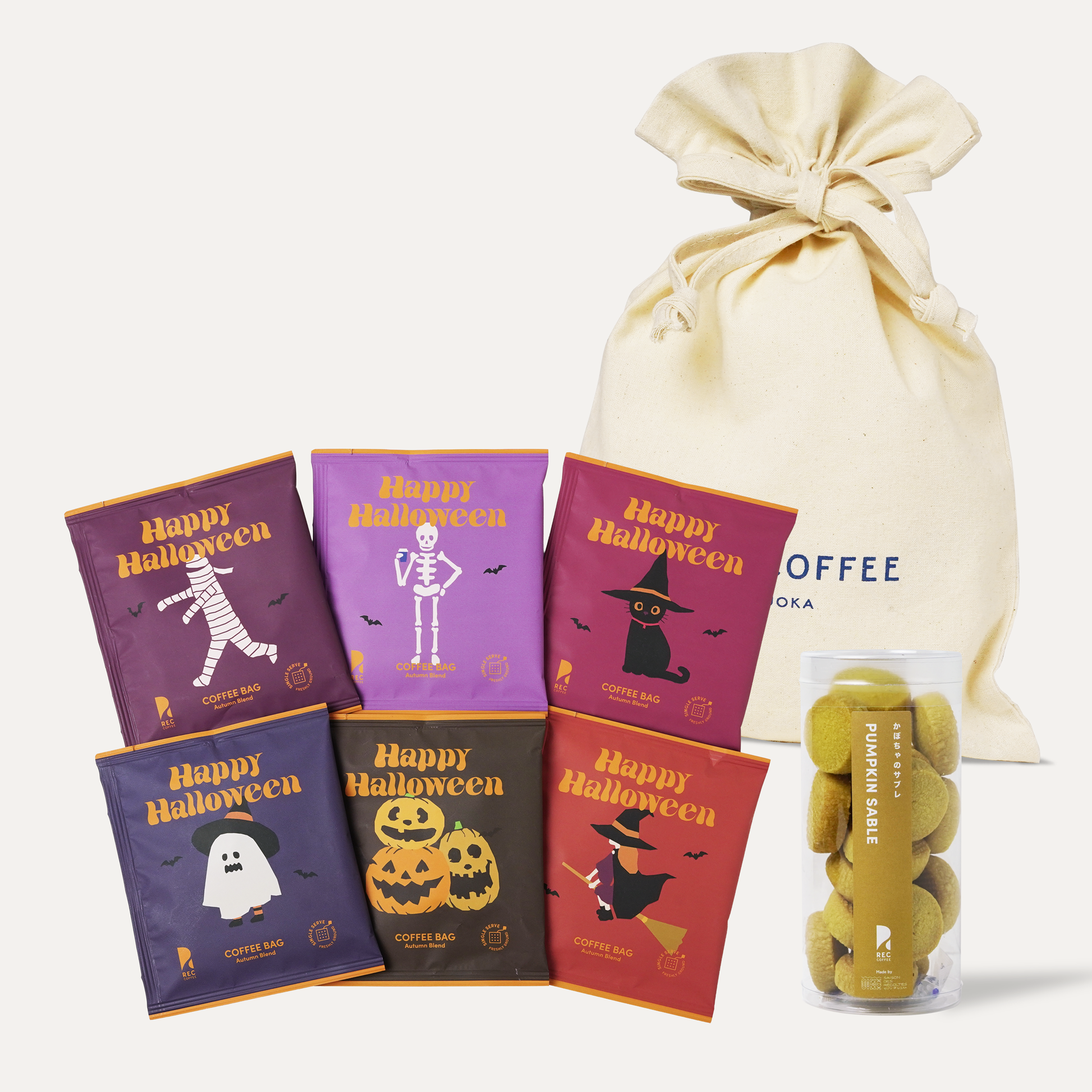 REC COFFEE発のパティスリーブランド「SAISON DES RÉCOLTES(セゾン・デ・レコルト)」でつくる季節限定のサブレと、6種類のパッケージのコーヒーバッグ(6種×1個)が巾着袋に入った商品です。