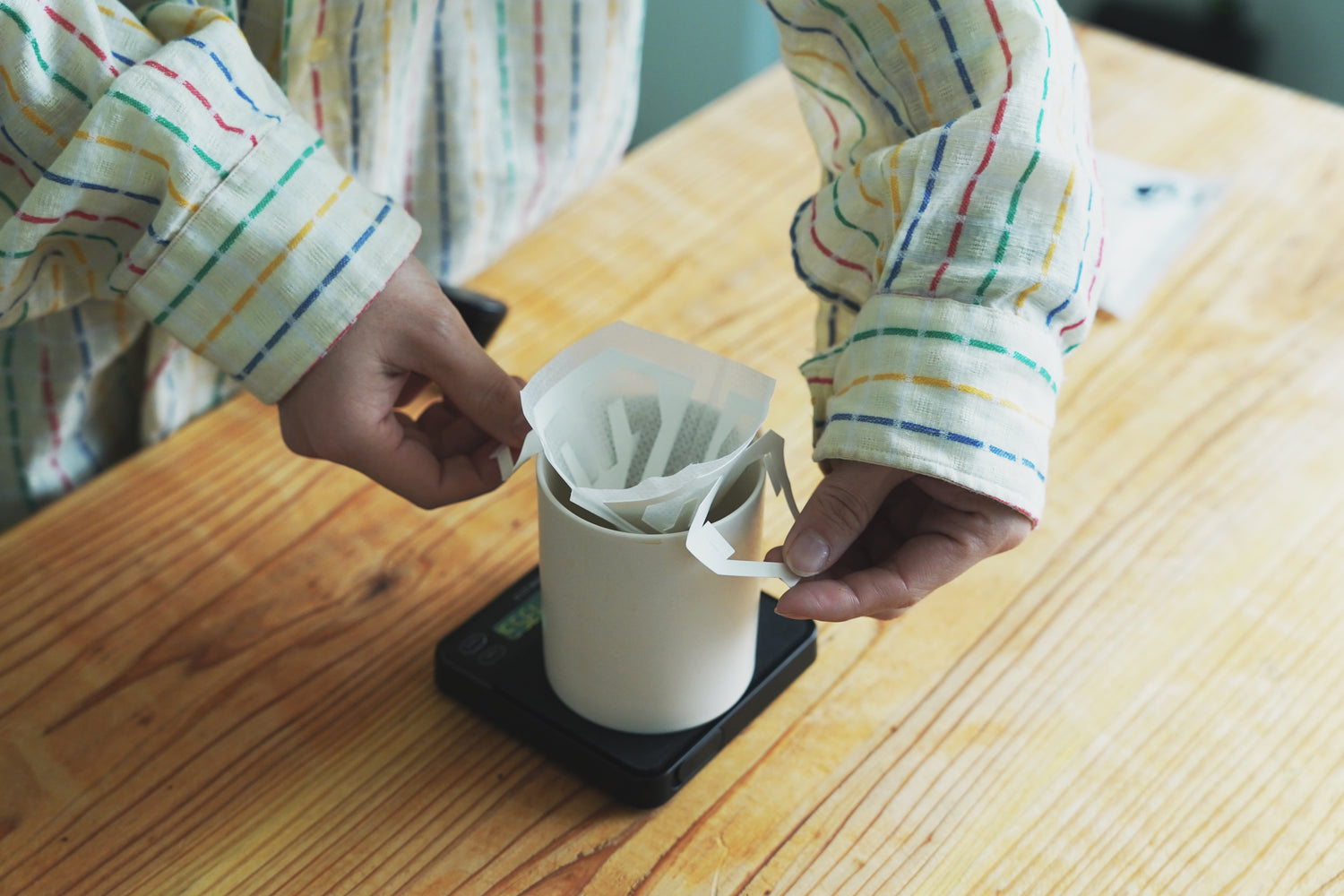 フィルターを1枚取り出し、ホルダー部分をお気に入りのマグカップにセットします。