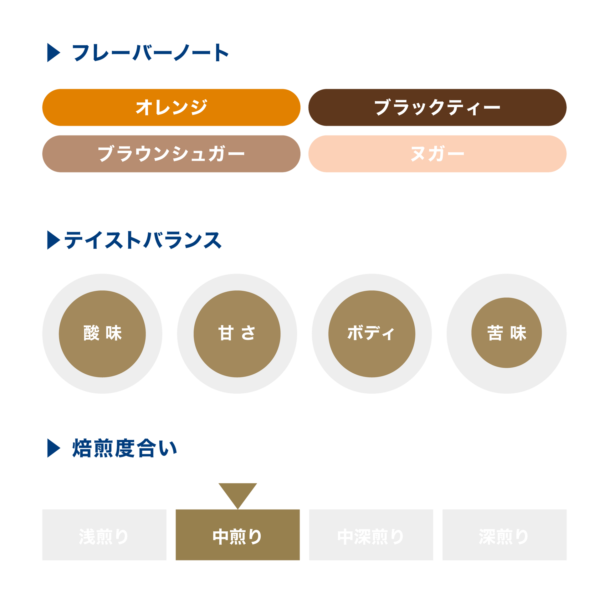 後口にはブラックティーに似た余韻が心地良いコーヒーです。冷めるにつれてオレンジのような明るい酸をしっかり感じることができます。滑らかな質感、ウェルバランスなコーヒーです。